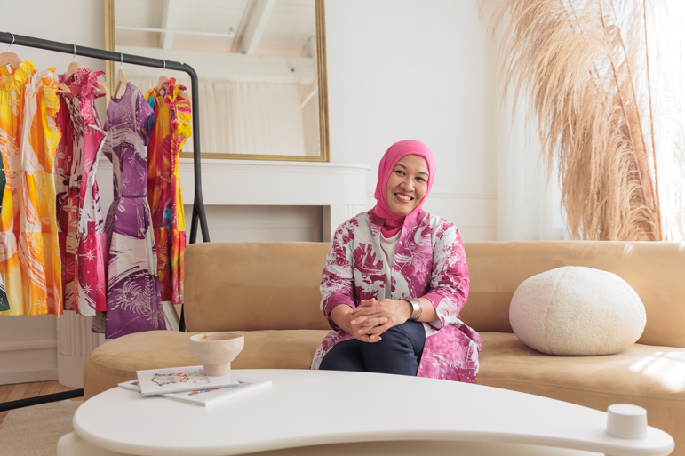 An Indonesian brand and designer based in Montreal, Entin Gartini is a self-taught designer, illustrator and author. She uses one-of-a-kind handmade batik designs that combines handmade fabric and colourful silhouettes. Entin chose to support Dress for Success through her grant, a non-profit organization that provides professional attire and development tools to help women gain economic independence.