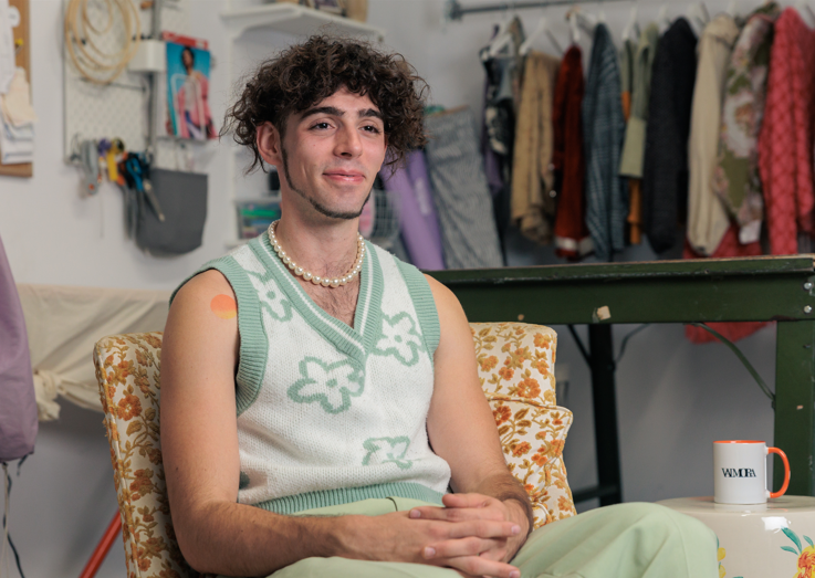 Designed by Mic. Carter in Toronto, L’Uomo Strano creates bold and lively clothing and is committed to building wardrobe staples for gender-nonconforming people. The brand is focused on how clothing can celebrate self-expression and a foster a sense of community. To pay it forward, Mic. Carter shared their grant with the fashion department at the Toronto Metropolitan University. The program offers education in communication, design, textile and material practices and design leadership.