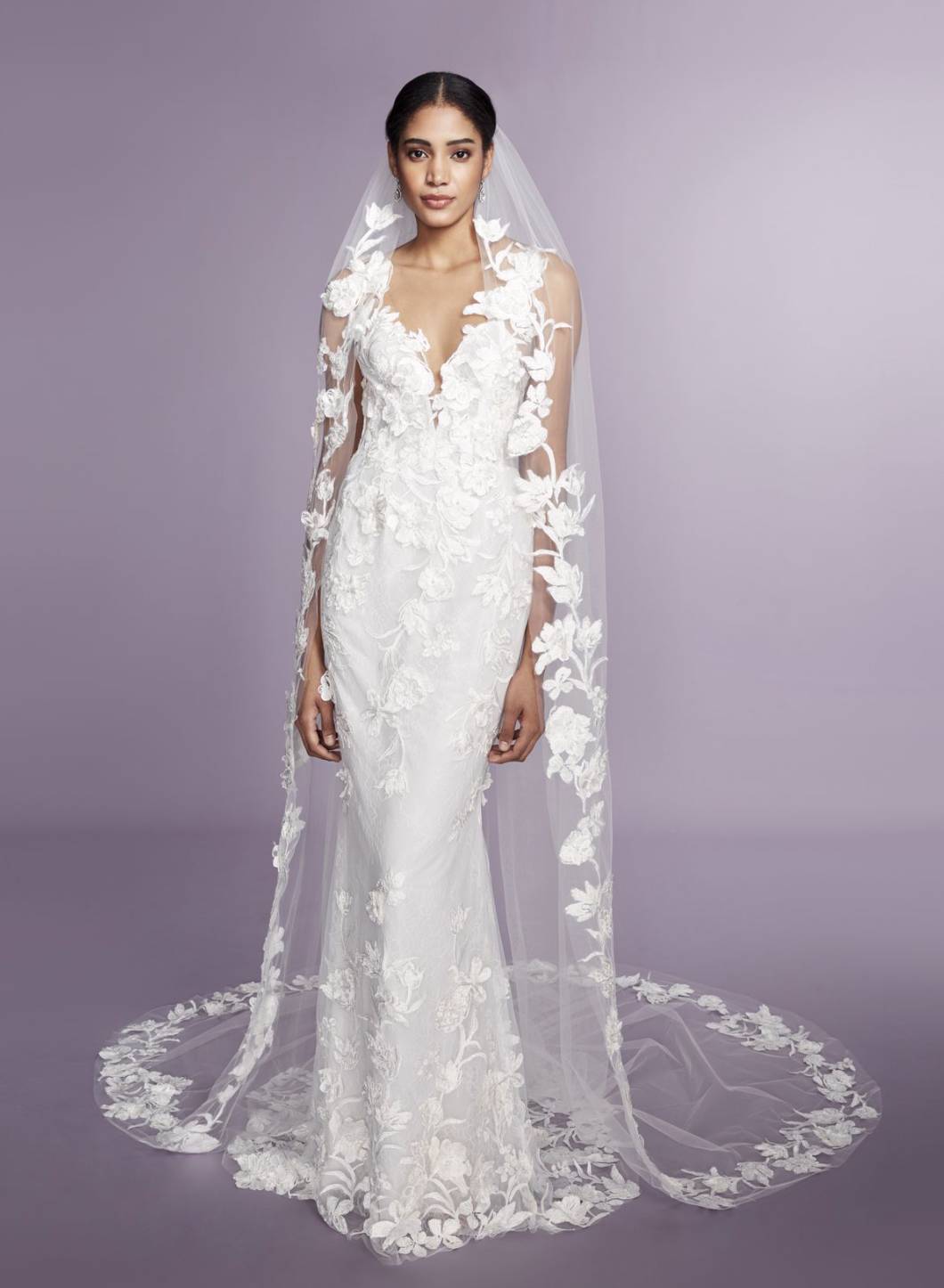 Across the globe, the all-white gown is still emblematic of a bride’s special day, but for Spring 2022, flowers will be in the spotlight. The laser cut doily patterns and larger than life 3D appliqués we saw on the runways promise three things: escape, romance, and optimism.