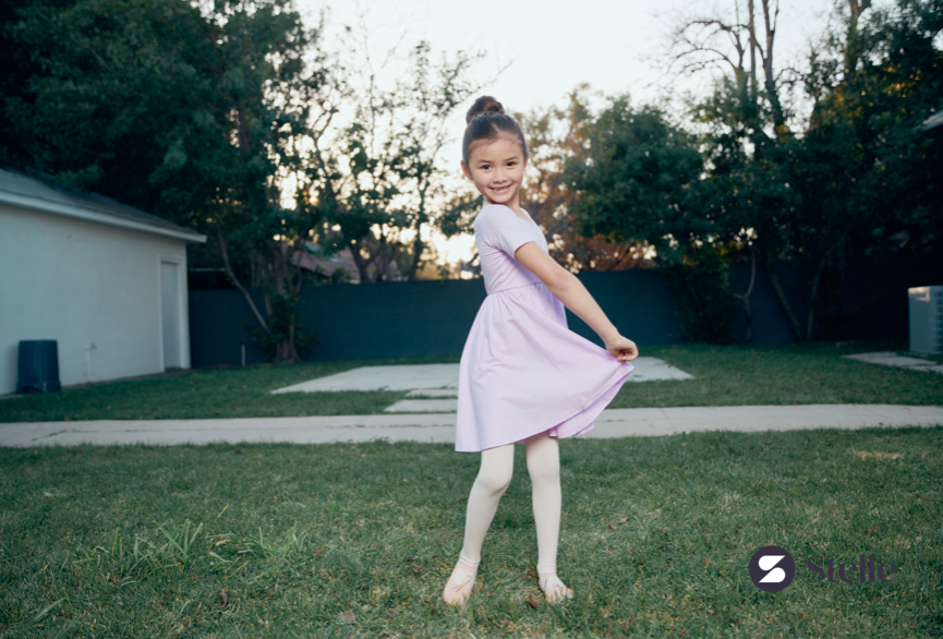 My hope is that every young dancer feels comfortable and energized wearing our pieces. We want to inspire girls to believe in themselves, express their imagination, and be proud of who they are. That’s part of where the inspiration for the name “Stelle” came from—it means “star” in Latin. We celebrate every child and provide them with the right gear so they can shine and take center-stage in everything they do.
