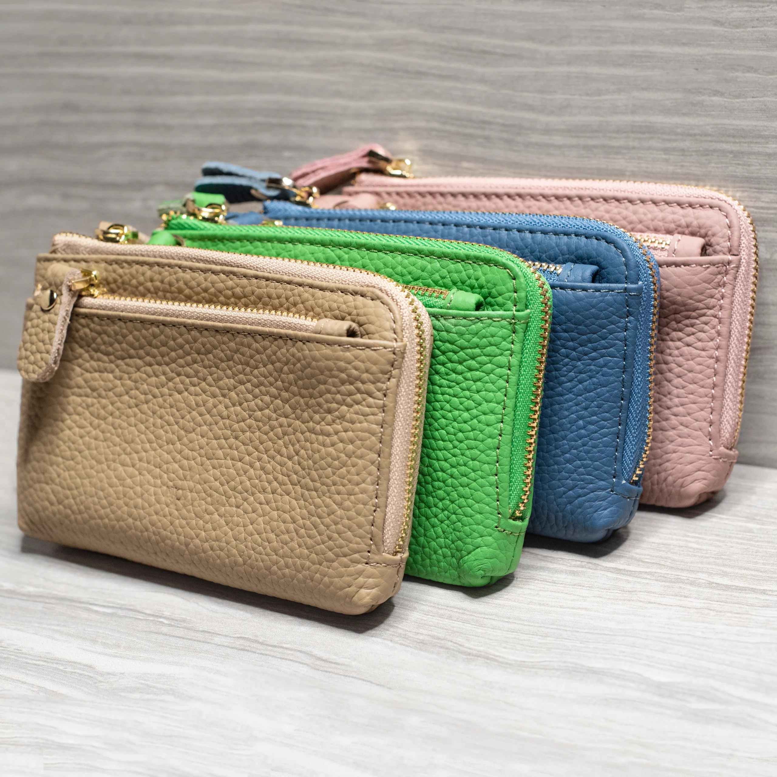 the ‘Commuter’ deluxe wristlet is the perfect on the go wallet. Made with genuine Italian naturally textured Napa Leather. Keeps coins, cards, keys and other essentials neatly with multiple zip pockets, card slots and key rings.