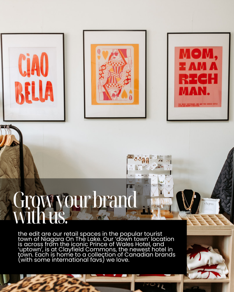 We’re on the lookout for Canadian brands who want to be a part of our story. Join us and grow your brand at the edit, our retail spaces in Niagara-on-the-Lake. Visit bit.ly/vendor-call-2026 and let’s expand together.