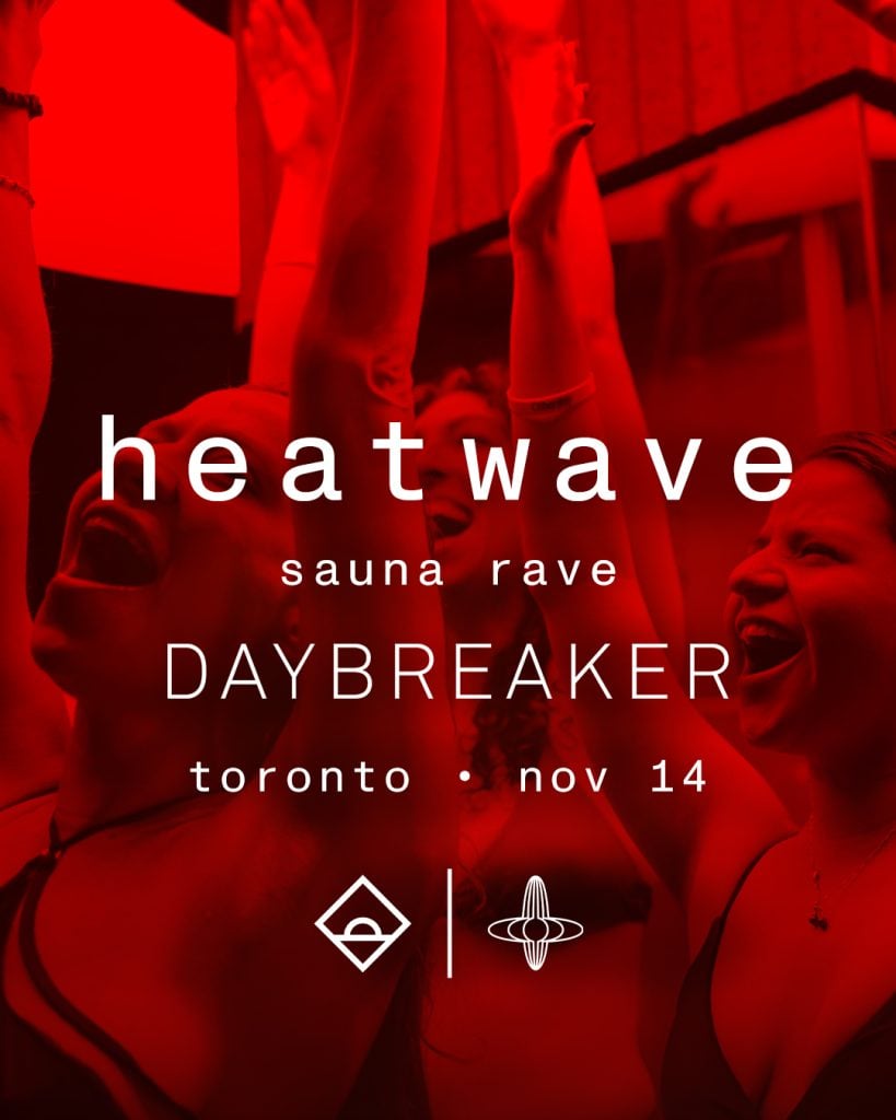 On November 14, Daybreaker Toronto takes over Othership Yorkville for Heatwave—a night that’s hard to name but easy to feel. Through guided sauna sessions, ice plunges, and dance, we’ll move, breathe, and rise together as the DJ’s set carries us higher. It’s heat, cold, rhythm, and connection—an energy that reminds us what’s real. 9:00 PM–12:00 AM. You ready to connect? We are.